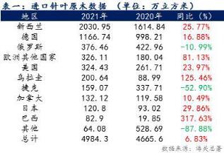 引言:我國原木進口多年來保持正增長,在2020年的4665.6萬立方米基數下,2021年進口針葉原木同比增加仍舊達6.83個點 ,現國際形勢波動,在保整內需情況下預計進口格局將有調整。