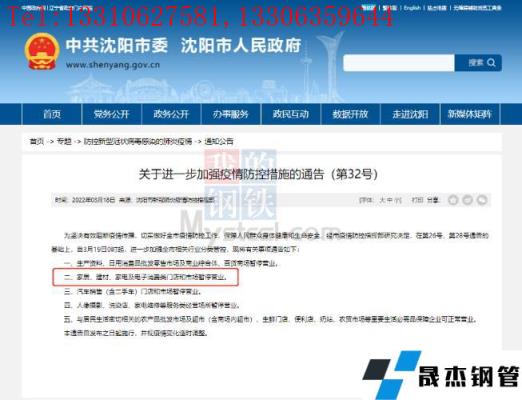 免責聲明:本網站(山東聊城晟杰無縫鋼管廠m.qiazhuo.cn)刊載的“快訊:沈陽加強疫情管控 所有鋼材_無縫鋼管市場或停止辦公及出庫”等均源于網絡,版權歸原作者所有,且僅代表原作者觀點,本文所載信息僅供參考。轉載僅為學習與交流之目的,如無意中侵犯您的合法權益,請及時聯系刪除。本網站刊登此篇文章并不意味著本站贊同其觀點或證實其內容的真實性,我們不對其科學性、嚴肅性等作任何形式的保證。如果侵犯了您的版權,請盡快聯系我們予以撤銷,謝謝合作!