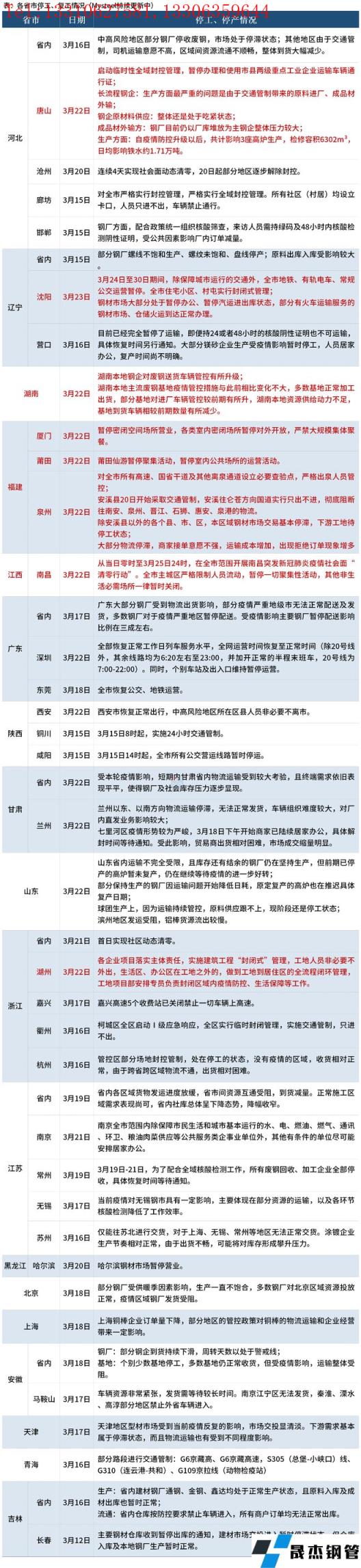 其中,3月22日,唐山市啟動臨時性全域封控管理,暫停辦理和使用市縣兩級重點工業企業運輸車輛通行證。沈陽于3月24日至30日期間,除保障城市運行的交通外,全市地鐵、有軌電車、常規公交運營暫停,全市住宅小區、村屯實行封閉式管理;厚壁無縫鋼管市場大部分處于暫停辦公、暫停汽運進出庫狀態,部分有火車運輸服務的厚壁無縫鋼管市場、倉儲火運到達正常辦理。3月20日福建泉州安溪縣開始采取交通管制,除安溪縣以外的各個縣、市、區,本區域厚壁無縫鋼管市場交易基本停滯,下游工地待停工狀態。具體情況如下: