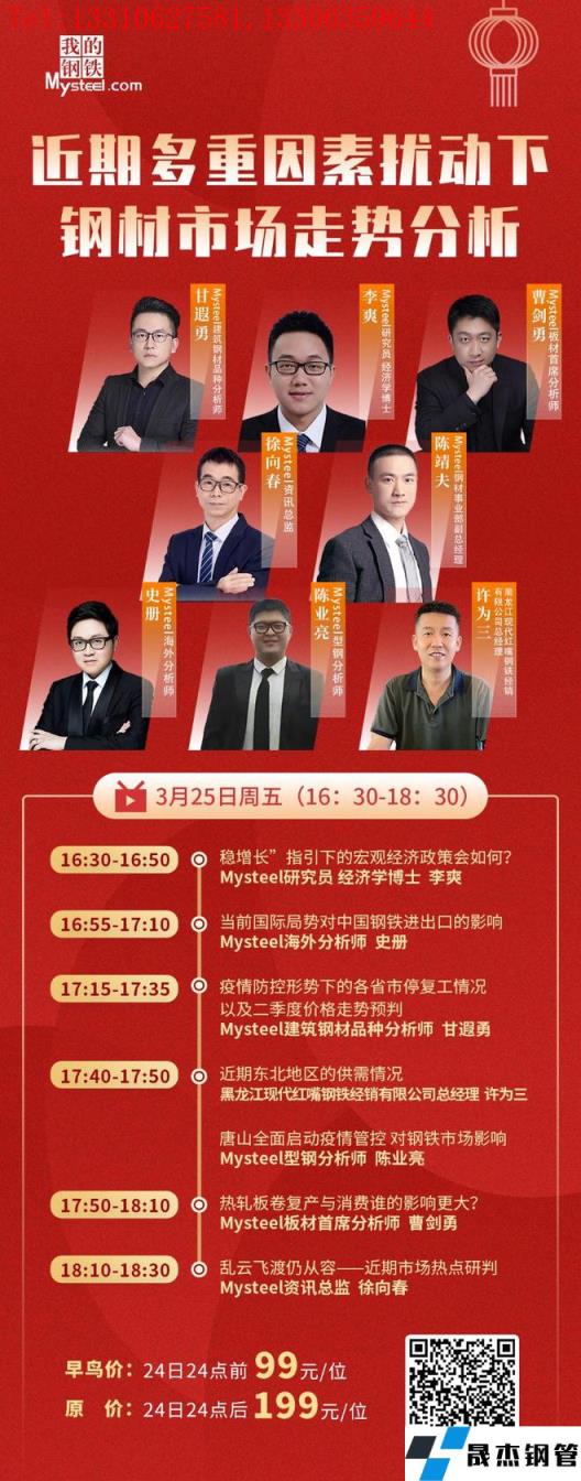 3月25日周五下午16:30,黑龍江現(xiàn)代紅嘴鋼鐵經(jīng)銷有限公司總經(jīng)理許為三、資訊總監(jiān)徐向春、經(jīng)濟學博士研究員李爽、板材首席分析師曹劍勇、建筑厚壁無縫鋼管品種分析師甘遐勇、型鋼分析師陳業(yè)亮及國際鋼鐵市場分析師史冊,將做客直播間,聊一聊近期多重因素擾動下對鋼鐵市場的影響有哪些?