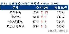 今日全國部分品種均價上漲,整體漲幅為6~23元/噸。