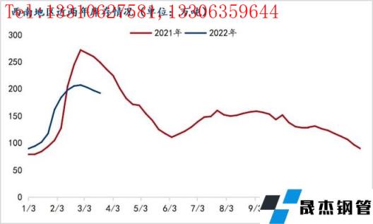 三月份西南地區(qū)建筑厚壁無縫鋼管窄幅震蕩運行,下游復工復產(chǎn)不及預期、全國疫情再次擴散、俄烏局勢沖突未息等多重因素疊加,放緩了季節(jié)性需求釋放的速度,西南整體去庫存速度同比偏緩慢。筆者就西南地區(qū)庫存數(shù)據(jù)情況作簡要分析。