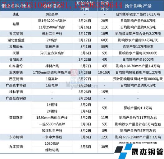 3月各地無縫鋼管廠家停產檢修匯總(附產量影響)
