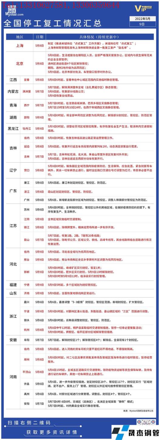 免責聲明:本網站(山東聊城晟杰無縫鋼管廠m.qiazhuo.cn)刊載的“疫情影響丨全國停工復工情況匯總(5月9日)”等均源于網絡,版權歸原作者所有,且僅代表原作者觀點,本文所載信息僅供參考。轉載僅為學習與交流之目的,如無意中侵犯您的合法權益,請及時聯系刪除。本網站刊登此篇文章并不意味著本站贊同其觀點或證實其內容的真實性,我們不對其科學性、嚴肅性等作任何形式的保證。如果侵犯了您的版權,請盡快聯系我們予以撤銷,謝謝合作!