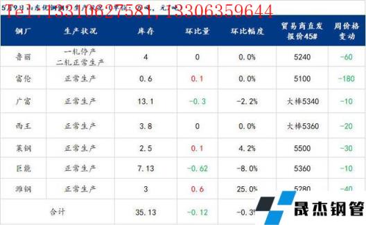 山東優(yōu)特無縫厚壁鋼管廠家?guī)齑?5.13萬噸,環(huán)比減少0.12萬噸,降幅0.34%,同比增加16.31萬噸,增幅86.66%。生產方面:魯麗一軋停產,二軋正常生產;臨沂江泉停產。