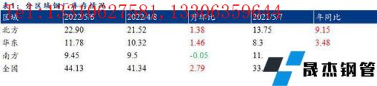 接下來再比較區(qū)域庫存的表現(xiàn)情況,從表1可以對比得出。目前北方、華東區(qū)域增庫較為明顯,分別高于同期9.15萬噸、3.48萬噸。主要是自3月份以來,北方、華東區(qū)域受疫情困擾,物流嚴重受阻,而無縫厚壁鋼管廠家產(chǎn)能利用率依舊保持高位,在產(chǎn)量不減的現(xiàn)狀下,而廠庫無法外移,導(dǎo)致廠庫持續(xù)累積。據(jù)了解,5月7日,營口市再次發(fā)布新冠肺炎疫情防控指揮部消息,結(jié)合當(dāng)前嚴峻的疫情形勢,營口市疫情防控指揮部決定提級管理,從即日起:實行全天24小時管制,交通信號燈全紅。解除時間另行通知,其他事項不變。這也就意味著北方區(qū)域的物流短期依舊受制。