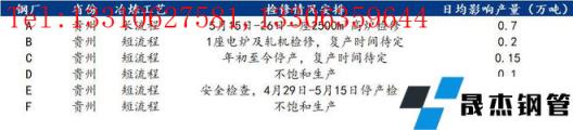 具體來看,高爐企業4月20日至30日安排一座1350m3高爐檢修,兩條棒線軋機輪流檢修,影響建筑厚壁無縫鋼管總產量近5萬噸,5月15至26日繼續安排一座2500m3高爐檢修,預計影響建筑厚壁無縫鋼管總產量7萬噸。電爐企業B無縫厚壁鋼管廠家一座電爐繼續停產檢修,棒材盤螺軋機輪流開工,日均影響產量0.2萬噸;C無縫厚壁鋼管廠家年初至今停產,復產時間待定;D無縫厚壁鋼管廠家減產,日均影響產量0.1萬噸;E無縫厚壁鋼管廠家4月29日至5月15日停產檢修,日均影響產量0.15萬噸;F無縫厚壁鋼管廠家減產,日均影響產量0.05萬噸。