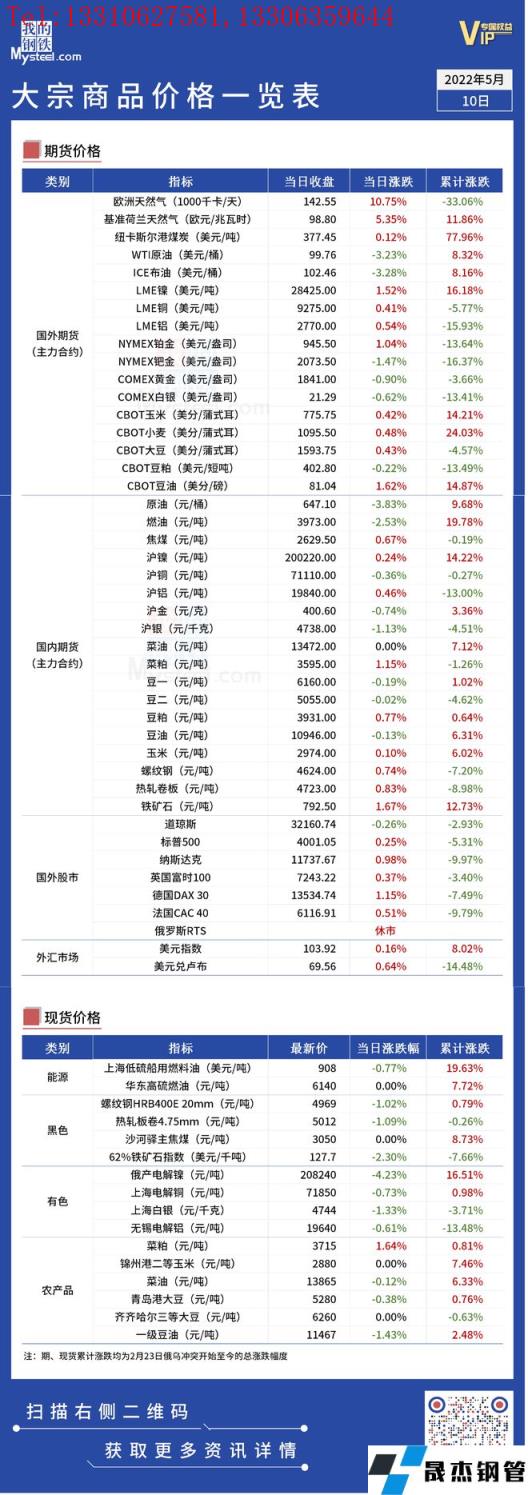 免責聲明:本網站(山東聊城晟杰無縫鋼管廠m.qiazhuo.cn)刊載的“俄烏局勢丨大宗商品價格一覽表(5月10日)”等均源于網絡,版權歸原作者所有,且僅代表原作者觀點,本文所載信息僅供參考。轉載僅為學習與交流之目的,如無意中侵犯您的合法權益,請及時聯系刪除。本網站刊登此篇文章并不意味著本站贊同其觀點或證實其內容的真實性,我們不對其科學性、嚴肅性等作任何形式的保證。如果侵犯了您的版權,請盡快聯系我們予以撤銷,謝謝合作!