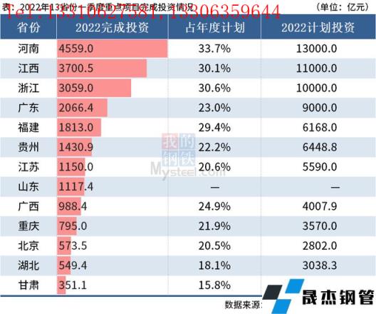 據(jù)不完全統(tǒng)計(jì),截至5月10日,已有13個(gè)省份公布其2022年一季度重點(diǎn)項(xiàng)目完成投資情況,合計(jì)完成投資2.2萬(wàn)億元,其中河南省一季度完成投資4559億元,排名第一,占年度計(jì)劃的33.7%。