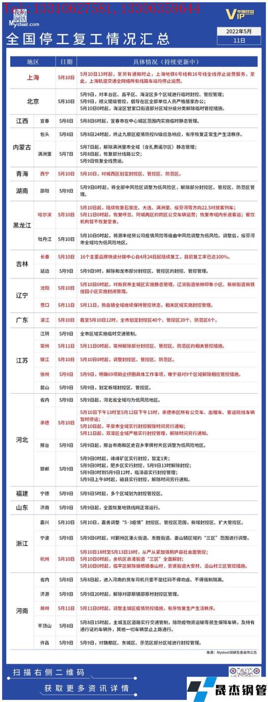 疫情影響丨全國停工復工情況匯總(5月10日)