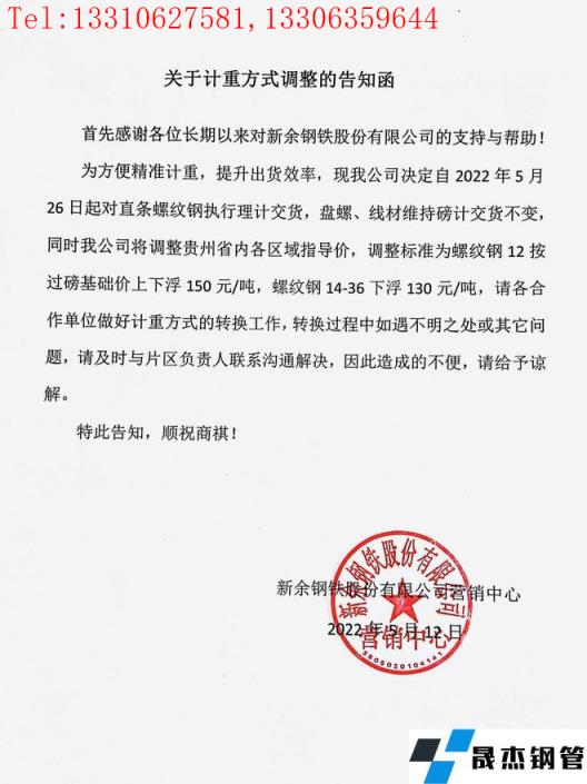 免責聲明:本網站(山東聊城晟杰無縫鋼管廠m.qiazhuo.cn)刊載的“新余鋼鐵股份有限公司關于對貴州區域計重方式調整的告知函”等均源于網絡,版權歸原作者所有,且僅代表原作者觀點,本文所載信息僅供參考。轉載僅為學習與交流之目的,如無意中侵犯您的合法權益,請及時聯系刪除。本網站刊登此篇文章并不意味著本站贊同其觀點或證實其內容的真實性,我們不對其科學性、嚴肅性等作任何形式的保證。如果侵犯了您的版權,請盡快聯系我們予以撤銷,謝謝合作!