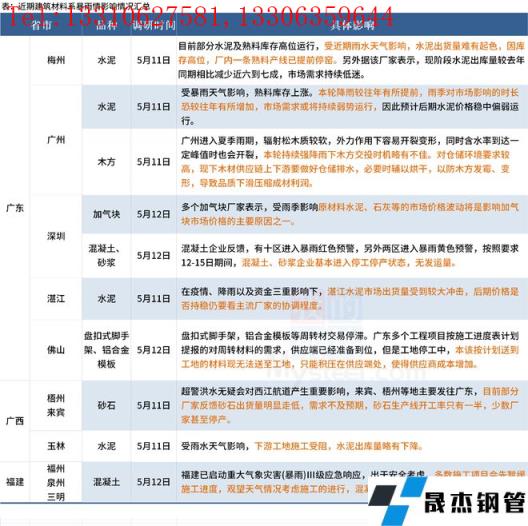 ◎ 截至5月12日,據(jù)百年建筑網(wǎng)調(diào)研,華南3省建材市場(chǎng)和建筑工地進(jìn)度受到天氣影響明顯。
