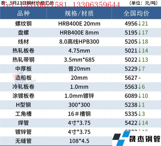 5月13日,國內厚壁無縫鋼管市場下跌為主,唐山鋼坯出廠價格穩(wěn)報4660元/噸。因南方多省份受強降雨影響,今日上午鋼市成交量延續(xù)低迷,午后隨著期鋼探底回升,部分城市低位資源成交好轉。