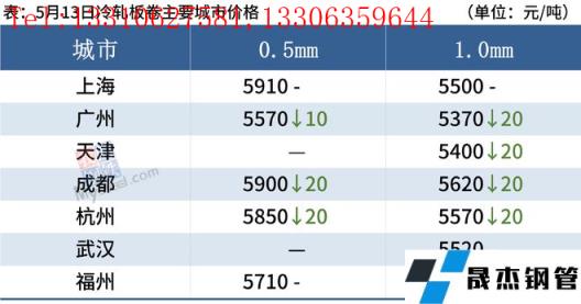 冷軋板卷:5月13日,全國24個主要城市1.0mm冷卷均價5563元/噸,較上個交易日持下跌6元/噸。黑色系期貨盤面止跌反彈,大部分商家操作仍以出貨回籠資金為主,大部分市場報價以穩(wěn)為主,小部分市場下調報價,整體成交有所好轉。市場方面,華東消費市場仍然受疫情影響較大,資源流通仍然較為不暢,消費回升較為緩慢。加之南方近期進入汛期,市場需求或將有所推后,商家心態(tài)多謹慎。綜合來看,預計下周全國冷軋板卷價格或將窄幅震蕩運行。