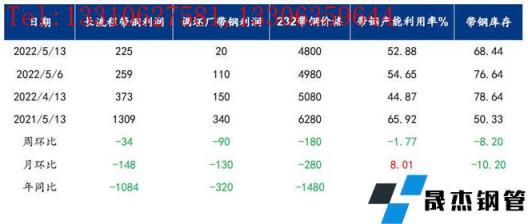 據(jù)調(diào)研結(jié)果顯示,5月11日調(diào)研結(jié)果顯示:本周唐山地區(qū)主流樣本無縫厚壁鋼管廠家平均鐵水不含稅成本為3665元/噸,平均鋼坯含稅成本 4721元/ 噸,周環(huán)比下調(diào)105元/噸,與5月11日當(dāng)前普方坯出廠價(jià)格 4640元/ 噸相比,無縫厚壁鋼管廠家平均毛利潤-81元/噸,周環(huán)比下調(diào)45元/噸。據(jù)調(diào)研,截止目前唐山地區(qū)樣本企業(yè)社會庫存為49.42萬噸,周環(huán)比增加3.34萬噸,月環(huán)比下降9.84萬噸,年同比下降12.44萬噸。從坯料角度看來,當(dāng)前鋼坯利潤為負(fù),且?guī)齑嫣幱谙鄬侠矸秶瑢r(jià)格或有一定支撐。
