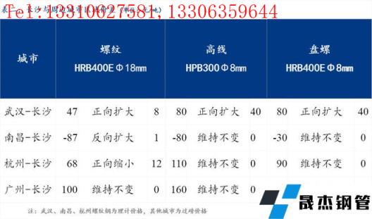 統(tǒng)一為理計單位后,武漢高于長沙47元/噸,南昌低于長沙87元/噸,杭州高于長沙68元/噸,廣州高于長沙100元/噸。