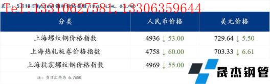 分地區方面,上海螺紋鋼價格指數4936,下跌53.0;上海熱軋板卷價格指數4758,下跌60.0。(單位:元/噸)