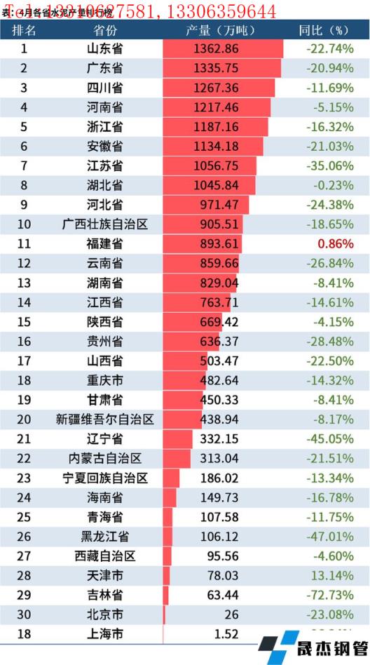 免責聲明:本網站(山東聊城晟杰無縫鋼管廠m.qiazhuo.cn)刊載的“統計局:前4月全國分省市水泥產量出爐,粵川蘇皖降超10%”等均源于網絡,版權歸原作者所有,且僅代表原作者觀點,本文所載信息僅供參考。轉載僅為學習與交流之目的,如無意中侵犯您的合法權益,請及時聯系刪除。本網站刊登此篇文章并不意味著本站贊同其觀點或證實其內容的真實性,我們不對其科學性、嚴肅性等作任何形式的保證。如果侵犯了您的版權,請盡快聯系我們予以撤銷,謝謝合作!