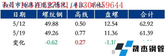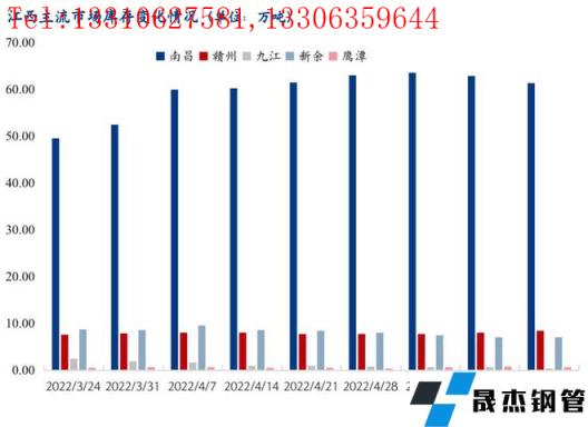 分品種來看,以南昌市場為例,本周南昌市場建筑厚壁無縫鋼管總庫存為61.39萬噸,其中螺紋鋼庫存為49.26萬噸,周環比減少0.62萬噸,降幅為1.24%;高線庫存為0.77萬噸,周環比增加0.27萬噸,增幅為54.0%;盤螺庫存為11.36萬噸,周環比減少1.18噸,降幅為9.41%。從資源占比來看,螺紋鋼資源占比80.23%,線盤資源占比19.77%,螺紋鋼占比較上周基本持平。