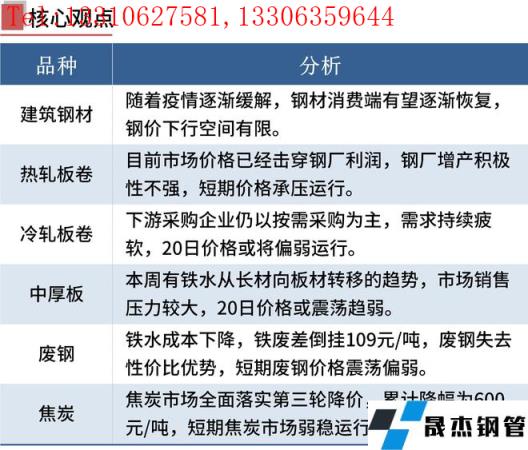 目前大部分電弧爐無縫厚壁鋼管廠家處于虧損狀態,華南地區獨立電弧爐建筑厚壁無縫鋼管無縫厚壁鋼管廠家平均噸鋼虧損超190元/噸,預計后期厚壁無縫鋼管供給進一步收縮。焦炭三輪降價之后,焦企已無多余利潤,焦企抵觸降價情緒增加。短期內鋼價仍處于震蕩尋底階段,但不宜過度悲觀,包括上海等多地疫情已得到有效控制,一旦需求修復,鋼價仍有反彈可能。