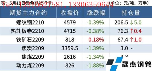 熱軋板卷:5月19日,全國24個主要城市4.75mm熱軋板卷均價4924元/噸,較上個交易日下跌43元/噸。近期相關重點城市疫情得到不同程度的好轉,但市場需求依然有明顯承壓,還沒出現明顯改善,但目前市場價格已經擊穿無縫厚壁鋼管廠家利潤,無縫厚壁鋼管廠家增產積極性不強,短期供給依然將維持相對低位。另外今日數據發布,本周熱軋無縫厚壁鋼管廠家產量下降0.89萬噸,廠庫下降2.19萬噸,社庫下降3.29萬噸,表需繼續下降,整體來看短期成材依然將承壓運行。
