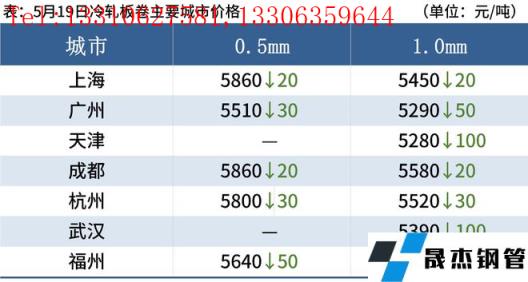 冷軋板卷:5月19日,全國24個主要城市1.0mm冷卷均價5487元/噸,較上個交易日下跌48元/噸。貿易商心態較為悲觀,市場報價混亂,多為暗降出貨,下游采購企業仍以按需采購為主,需求持續疲軟。庫存方面,據不完全統計,本周冷軋無縫厚壁鋼管廠家庫存44.14萬噸,周環比增加1.09萬噸;社會庫存137.29萬噸,周環比增加0.48萬噸。綜合來看,故預計20日國內冷軋板卷價格或將偏弱運行。