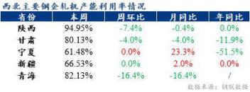 本周西北區域15家建筑厚壁無縫鋼管生產廠家48條產線實際開工44條,軋線開工率為91.7%,周環比持平;建材產線實際產量約65萬噸,周環比減少約3萬噸,產能利用率為77.92%,周環比下降3.55%,區域內產能利用率處于中等偏高水平,短時間無縫厚壁鋼管廠家減產意愿較強。