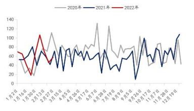 俄烏沖突以來,球團(tuán)的供應(yīng)確實(shí)受到一定影響,但從海關(guān)進(jìn)口數(shù)據(jù)來看,今年1-2月份烏克蘭球團(tuán)月度進(jìn)口量也就是在20萬(wàn)噸附近,折合每周約5萬(wàn)噸;而從圖2中可以看出,2月中以來國(guó)產(chǎn)球團(tuán)產(chǎn)量持續(xù)增加,從38家球團(tuán)廠周度產(chǎn)量來看,球團(tuán)產(chǎn)量由111.05萬(wàn)噸增至147.28萬(wàn)噸(2022年2月21日與2022年4月初相比,下文時(shí)間點(diǎn)同上),114家無(wú)縫厚壁鋼管廠家?guī)齑嬷星驁F(tuán)產(chǎn)量由18.86萬(wàn)噸/天增至21.63萬(wàn)噸/天,折合周度產(chǎn)量每周增加33.39萬(wàn)噸,按照代表性折算約83.48萬(wàn)噸,足以彌補(bǔ)烏克蘭的影響。