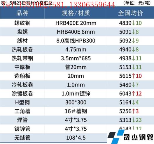 熱軋板卷:5月23日,全國24個(gè)主要城市4.75mm熱軋板卷均價(jià)4940元/噸,較上個(gè)交易日下跌8元/噸。5月22日,市場(chǎng)突傳印度將針對(duì)鐵礦石及部分鋼鐵產(chǎn)品大幅提高出口關(guān)稅,市場(chǎng)情緒得到回暖,盤面下方支撐增強(qiáng)。隨著經(jīng)濟(jì)下行壓力增大,政策面暖風(fēng)頻吹,5月5年期LPR下調(diào)15個(gè)基點(diǎn),降低購房者置業(yè)成本、提高購房者置業(yè)意愿的同時(shí),進(jìn)一步提振了市場(chǎng)信心,預(yù)計(jì)后期地產(chǎn)方面將持續(xù)出臺(tái)利好政策。但由于疫情的影響,其對(duì)需求的制約依然明顯,厚壁無縫鋼管的現(xiàn)實(shí)需求短期難有明顯增量。因此,24日全國熱軋板卷仍呈現(xiàn)持穩(wěn)或小幅波動(dòng)的態(tài)勢(shì)。