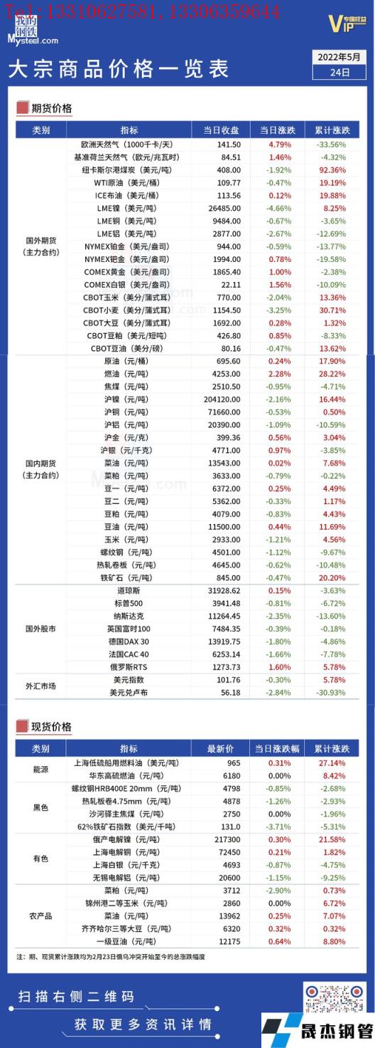 免責聲明:本網站(山東聊城晟杰無縫鋼管廠m.qiazhuo.cn)刊載的“俄烏局勢丨大宗商品價格一覽表(5月24日)”等均源于網絡,版權歸原作者所有,且僅代表原作者觀點,本文所載信息僅供參考。轉載僅為學習與交流之目的,如無意中侵犯您的合法權益,請及時聯系刪除。本網站刊登此篇文章并不意味著本站贊同其觀點或證實其內容的真實性,我們不對其科學性、嚴肅性等作任何形式的保證。如果侵犯了您的版權,請盡快聯系我們予以撤銷,謝謝合作!