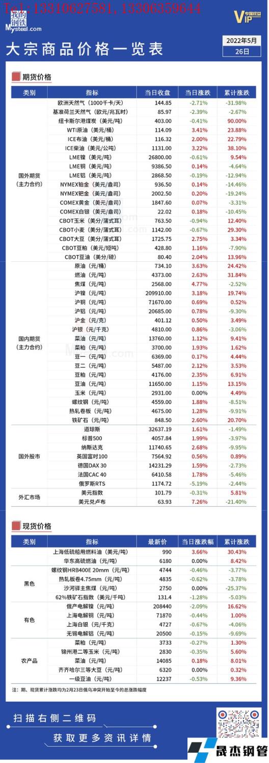 免責聲明:本網站(山東聊城晟杰無縫鋼管廠m.qiazhuo.cn)刊載的“俄烏局勢丨大宗商品價格一覽表(5月26日)”等均源于網絡,版權歸原作者所有,且僅代表原作者觀點,本文所載信息僅供參考。轉載僅為學習與交流之目的,如無意中侵犯您的合法權益,請及時聯系刪除。本網站刊登此篇文章并不意味著本站贊同其觀點或證實其內容的真實性,我們不對其科學性、嚴肅性等作任何形式的保證。如果侵犯了您的版權,請盡快聯系我們予以撤銷,謝謝合作!
