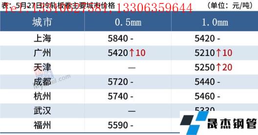 冷軋板卷:5月27日,全國24個主要城市1.0mm冷卷均價5425元/噸,較上個交易日上漲1元/噸。黑色系期貨盤面止跌反彈,市場信心稍有提振,釋放部分投機需求,多數(shù)商家以出貨回籠資金操作為主,成交稍有好轉(zhuǎn)。據(jù)商家反饋,當前下游制造業(yè)都在緩慢復蘇狀態(tài),其接單一般,采購心態(tài)也較為謹慎,未見大規(guī)模補庫采購的跡象。就下周市場而言,臨近月底,考慮到市場商家資金和庫存壓力均較大,預計下周全國市場冷軋板卷價格或?qū)⒄鹗庍\行。