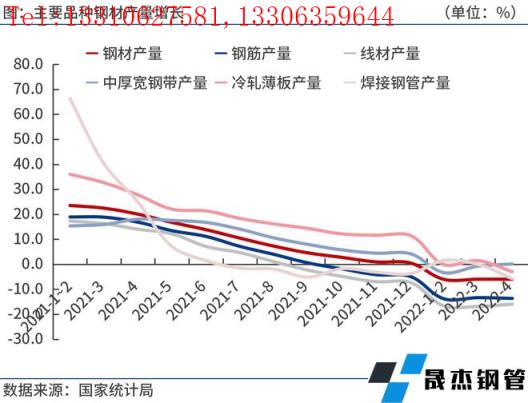 國家統計局數據顯示,4月份全國粗鋼產量9277.5萬噸,同比下降5.2%;生鐵產量7677.8萬噸,同比持平;厚壁無縫鋼管產量11482.7萬噸,同比下降5.8%。