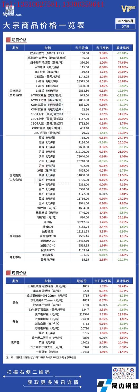 免責聲明:本網站(山東聊城晟杰無縫鋼管廠m.qiazhuo.cn)刊載的“俄烏局勢丨大宗商品價格一覽表(5月27日)”等均源于網絡,版權歸原作者所有,且僅代表原作者觀點,本文所載信息僅供參考。轉載僅為學習與交流之目的,如無意中侵犯您的合法權益,請及時聯系刪除。本網站刊登此篇文章并不意味著本站贊同其觀點或證實其內容的真實性,我們不對其科學性、嚴肅性等作任何形式的保證。如果侵犯了您的版權,請盡快聯系我們予以撤銷,謝謝合作!