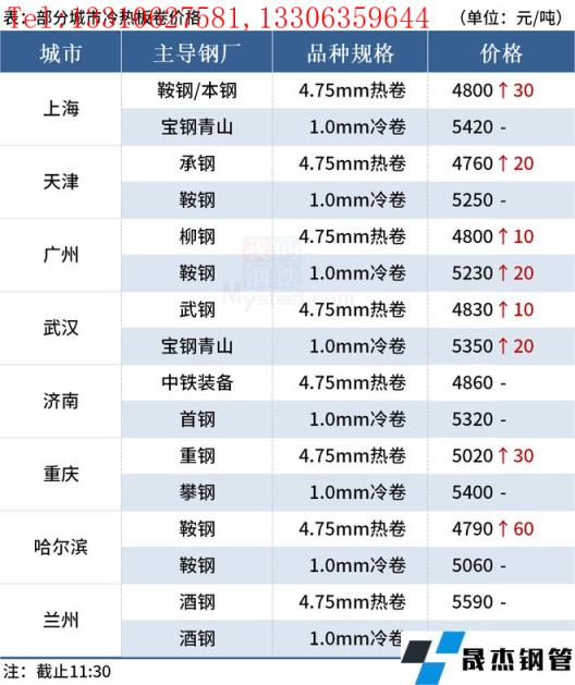◎樂從:30日早盤熱卷市場價格上漲10,4.75以上普柳燕4800-4810,2.75普4990-5060錳4980-5000。(單位:元/噸)