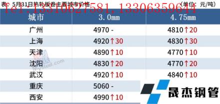 熱軋板卷:5月31日,全國24個主要城市4.75mm熱軋板卷均價4883元/噸,較上個交易日上漲10元/噸。近期受政策以及需求回暖影響,商家信心開始有所提振,商家報價普遍上漲,市場成交開始有所回暖。受疫情影響,部分區域開始逐步復工,上海自1日開始基本恢復正常,未來還要看復工復產速度是否加塊,需求是否達預期。整體來看,預計近期全國熱軋板卷價格震蕩趨強運行。