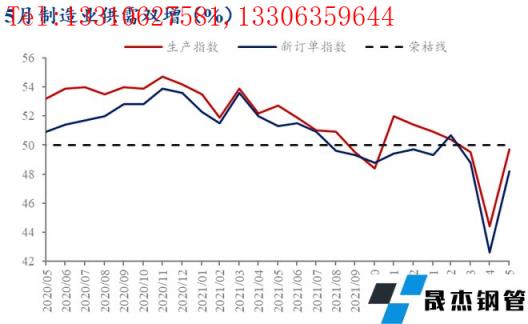 二、5月制造業(yè)PMI指數(shù)呈供需雙增的態(tài)勢,需求回升力度大于供給,大體符合前期判斷。4月筆者發(fā)布的文章《4月制造業(yè)PMI指數(shù)低迷,未來厚壁無縫鋼管消費何去何從?》中便提到,隨著我國經(jīng)濟逐步復(fù)蘇,需求復(fù)蘇的彈性將快于供給端。從數(shù)據(jù)來看,5月新訂單指數(shù)大幅回升5.6個百分點至48.2%,回升幅度高于生產(chǎn)指數(shù)。據(jù)國家統(tǒng)計局數(shù)據(jù),5月專用設(shè)備、汽車等行業(yè)生產(chǎn)指數(shù)較上月大幅上升10個百分點以上,升至擴張區(qū)間;石油煤炭及其他燃料加工、化學原料及化學制品、黑色金屬冶煉及壓延加工等行業(yè)新訂單指數(shù)重回擴張區(qū)間。