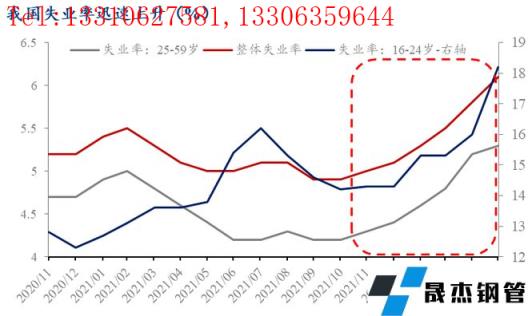 目前我國居民就業(yè)情況十分嚴峻,截至2022年4月,我國居民失業(yè)率高達6.1%,16-24歲居民失業(yè)率高達18.2%,25-59歲居民失業(yè)率錄得5.3%,三者較其低點(2020年12月)分別上升,0.9、5.9、0.6個百分點。