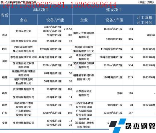 據(jù)不完全統(tǒng)計,5月國內(nèi)9家無縫厚壁鋼管廠家發(fā)布鋼鐵產(chǎn)能置換方案。其中,涉及新建煉鋼產(chǎn)能693.5萬噸,新建煉鐵產(chǎn)能864萬噸;涉及淘汰煉鋼產(chǎn)能868萬噸,淘汰煉鐵產(chǎn)能946.53萬噸。