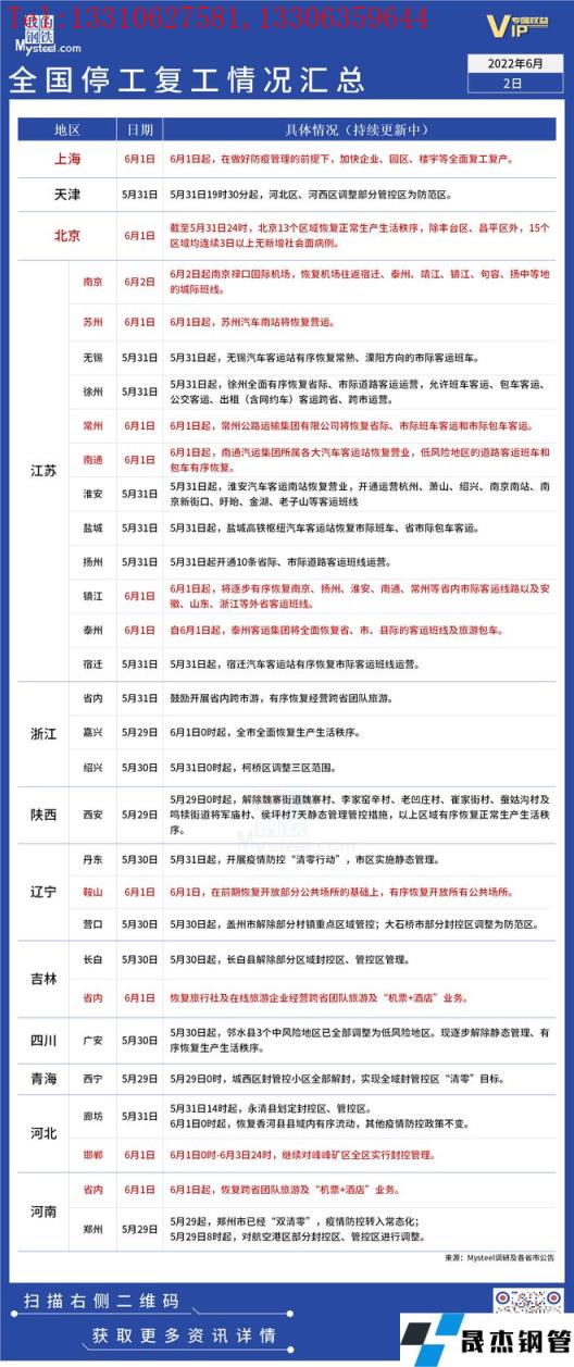 免責聲明:本網站(山東聊城晟杰無縫鋼管廠m.qiazhuo.cn)刊載的“疫情影響丨全國停工復工情況匯總(6月2日)”等均源于網絡,版權歸原作者所有,且僅代表原作者觀點,本文所載信息僅供參考。轉載僅為學習與交流之目的,如無意中侵犯您的合法權益,請及時聯系刪除。本網站刊登此篇文章并不意味著本站贊同其觀點或證實其內容的真實性,我們不對其科學性、嚴肅性等作任何形式的保證。如果侵犯了您的版權,請盡快聯系我們予以撤銷,謝謝合作!