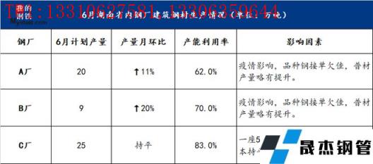 表二:6月省內(nèi)無縫厚壁鋼管廠家生產(chǎn)情況