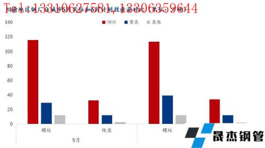 1、5月份川渝地區無縫厚壁鋼管廠家建材實際投放總量204.86萬噸,環比增加3.18%;其中螺紋鋼實際投放157.19萬噸,環比增加4.76%,線盤實際投放47.67萬噸,環比減少1.71%。