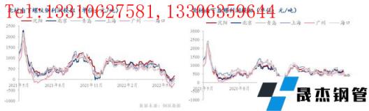 具體來看,2022年6月東北建筑厚壁無縫鋼管模擬月均利潤中廣州螺紋鋼利潤環比減少322元/噸、出現了132元/噸的虧損,盤螺利潤環比減少180元/噸、出現了180元/噸的虧損,海口方向螺紋鋼、盤螺利潤也僅為11元/噸、49元/噸,加上4月份廣州、海口也處于墊底狀態,說明當前華南市場依舊不是東北資源的最佳流向,而華北、華東5月份疫情分控相對較嚴格,資源流動受限較多,利潤模型上雖超了華南,但無縫厚壁鋼管廠家實際獲取利潤或相對有限。