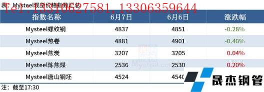 ◎ 6月7日,全國(guó)15家長(zhǎng)、短流程代表無(wú)縫厚壁鋼管廠家廢鋼庫(kù)存總量78.89萬(wàn)噸,較昨日降1.75萬(wàn)噸,降2.17%;庫(kù)存周轉(zhuǎn)天8.9天,較昨日降0.1天;日均消耗4446.67噸,較昨日降3.84%;日均到貨量3279.6噸,較昨日降3.84%。