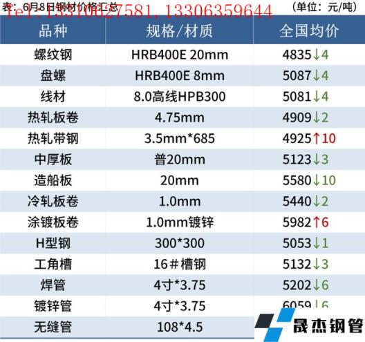 建筑厚壁無縫鋼管:6月8日,全國31個主要城市20mm三級抗震螺紋鋼均價4835元/噸,較上個交易日跌4元/噸。目前市場需求仍未迎來實質性好轉,尤其近兩日高考,一定程度上影響了部分成交,因此,雖然下午期貨上調,但除了情緒上好轉,實際高位成交并不多,表明剛性需求依然乏力,因此預計9日國內建筑厚壁無縫鋼管價格或將維持窄幅震蕩運行態勢。