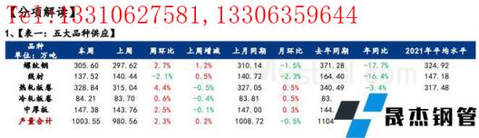 據(jù)統(tǒng)計(jì),建材方面,分品種來看,本周螺紋產(chǎn)量環(huán)比增量,從區(qū)域來看除華中、華南和西北,其余均有增產(chǎn);華東增產(chǎn)集中于江蘇,原因在于鐵水恢復(fù)和設(shè)備復(fù)產(chǎn),西北降產(chǎn)集中于新疆,原因在于企業(yè)集中停限產(chǎn);線盤產(chǎn)量環(huán)比下降,除華北、西北和東北,其余均有增產(chǎn),但各區(qū)域產(chǎn)量變化幅度均不大。整體來看,建材供應(yīng)環(huán)比增量,多數(shù)區(qū)域鋼企生產(chǎn)狀態(tài)相對持穩(wěn)。熱卷方面,本周熱軋產(chǎn)量繼續(xù)回升,主要增幅地區(qū)是華東地區(qū),主要是前期檢修無縫厚壁鋼管廠家本周恢復(fù)完全滿產(chǎn),供給繼續(xù)回升,主要降幅地區(qū)是東北、華北、西南地區(qū),其中東北地區(qū)有無縫厚壁鋼管廠家主動(dòng)小幅減產(chǎn),華北和西南則是有新增無縫厚壁鋼管廠家檢修,但檢修天數(shù)較短,下周仍有下降空間。
