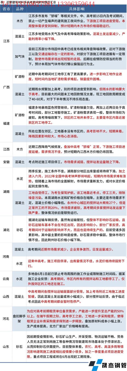 截至6月10日,據(jù)百年建筑網(wǎng)調(diào)研顯示,共有12個省市建筑市場和建筑工地建筑工地進度受到明顯影響。整體來看,近兩周全國為為中高考做準備,及多地疫情隱有再抬頭跡象,加之暴雨天氣遍及多地,對于工程項目恢復(fù)并不榮樂觀,短期整體市場仍會呈現(xiàn)供需兩弱局面。具體情況如下: