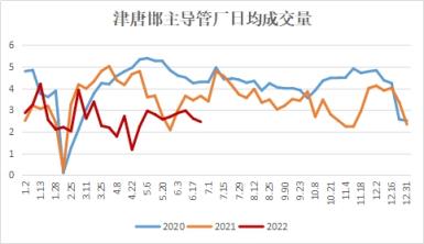 圖5津唐邯主流管廠日均出貨量走勢圖
