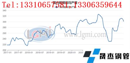 圖7 2017-2022年大中型厚壁無縫鋼管企業粗鋼旬產