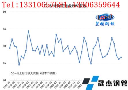 云商平臺統計發布的2022年7月份厚壁無縫鋼管流通業PMI總指數為46.7%,比上月回升0.6個百分點,在收縮區間內低位回升。從分類指數看,構成厚壁無縫鋼管流通業